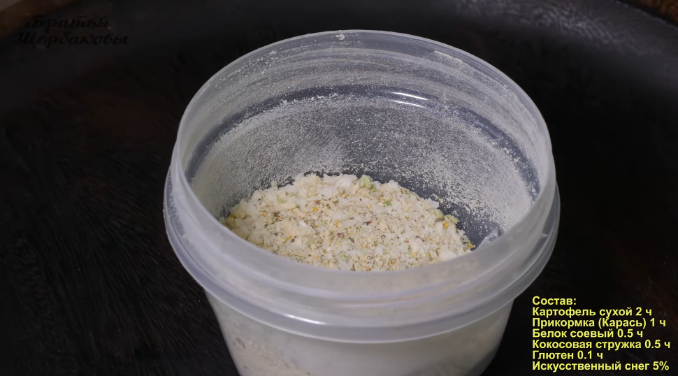 Теперь дело за малым. Нужно уже именно под свойства полиакрилата натрия подобрать более подходящей состав теста. В него обязательно нужно вносить ароматику, сублимированных креветок, червей, мотылей или моллюсков.