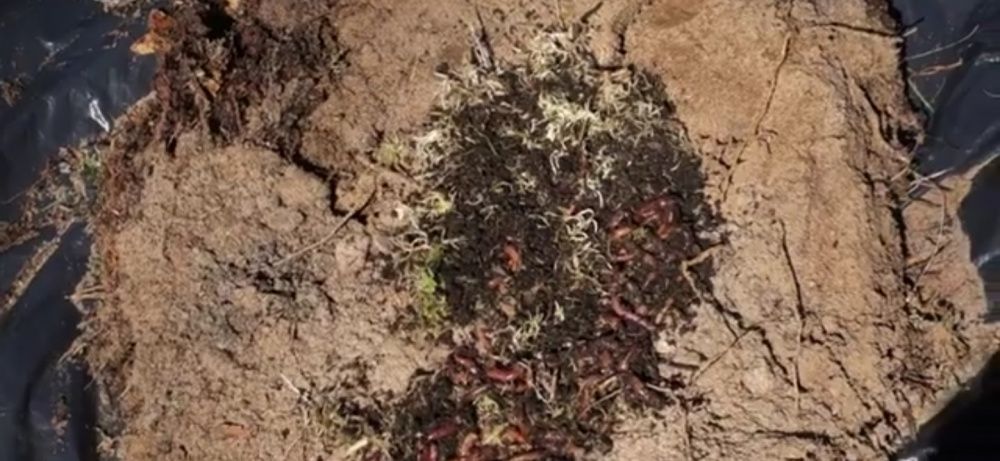 Итак, нам понадобиться дерн. Его лучше взять возле водоёма, на котором собираетесь рыбачить. Достали кусок дерна размером 30 на 30 и размещаем его на целлофан. На дерн выкладываем червей. Они должны полностью в него залезть. Какое - то время нужно подождать, можно даже полить водичкой.