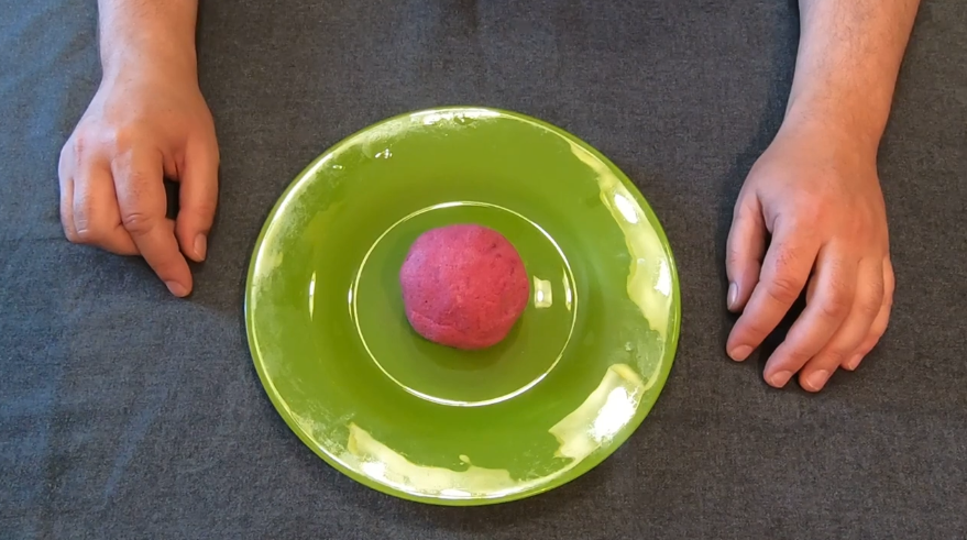 Теперь всё хорошенько размешиваем, размешиваем до состояния теста. Вот у нас получился такой хороший колобочек с фиолетовым цветом, он очень плотный.