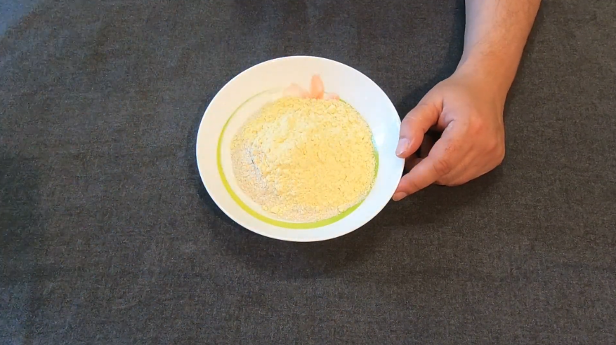 Второе, что нам нужно, это мука ржаная или мука пшеничная, я использую муку ржаную, потому что там есть отруби, все-таки будет лучше.Третье, нам нужно одно яйцо, хорошо его взбить до однородной массы для связывания вот этих материалов: кукурузной муки и муки ржаной.