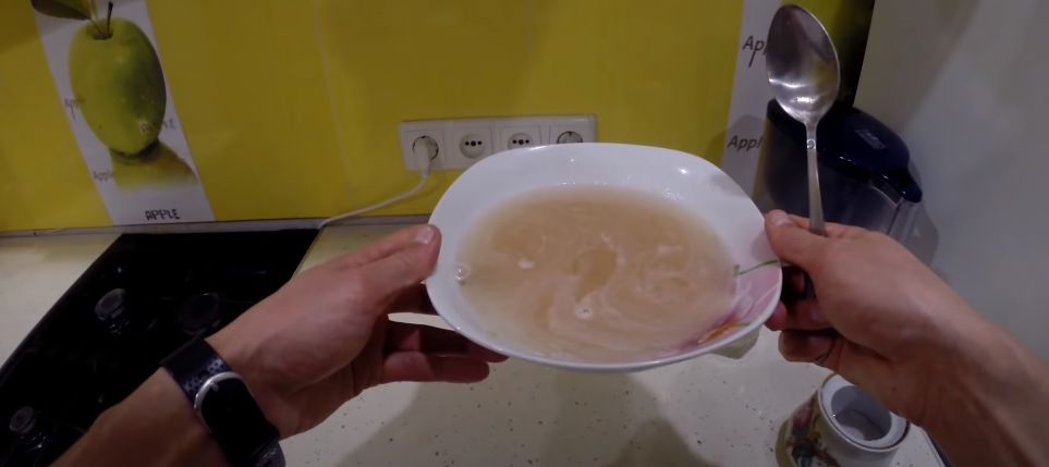 Добавляем обычную кипяченую воду, промываем икру, даем пару минуток постоять. Вся, икра осела - ливаем воду.