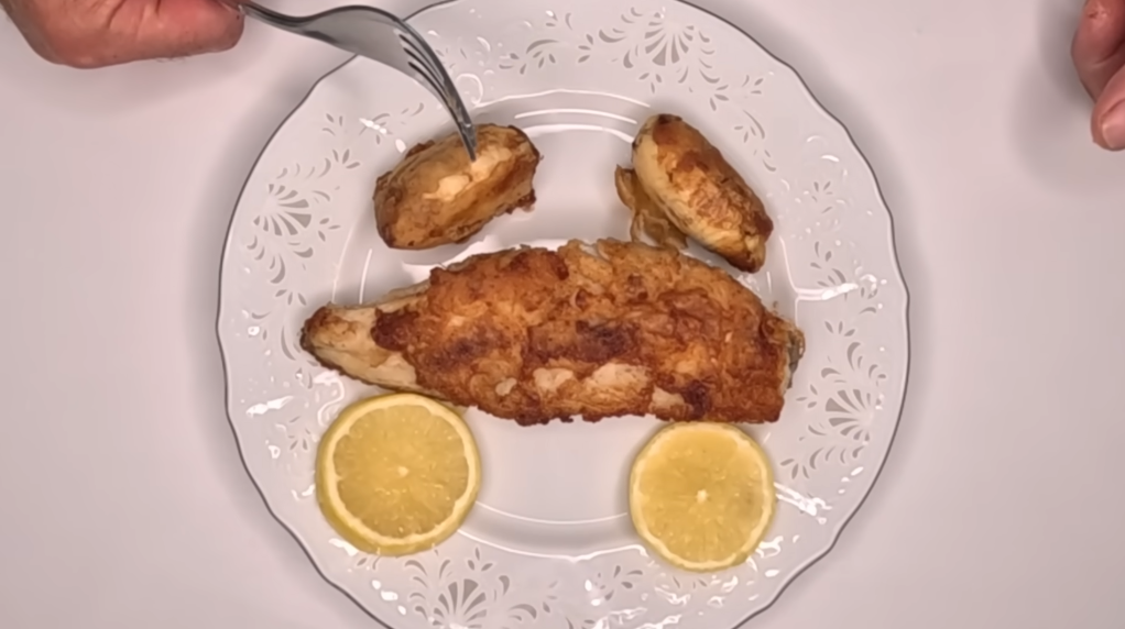 - Положить в глубокую тарелку, посолить, поперчить и добавить лимонного сока. Дать промариноваться 20–30 минут.