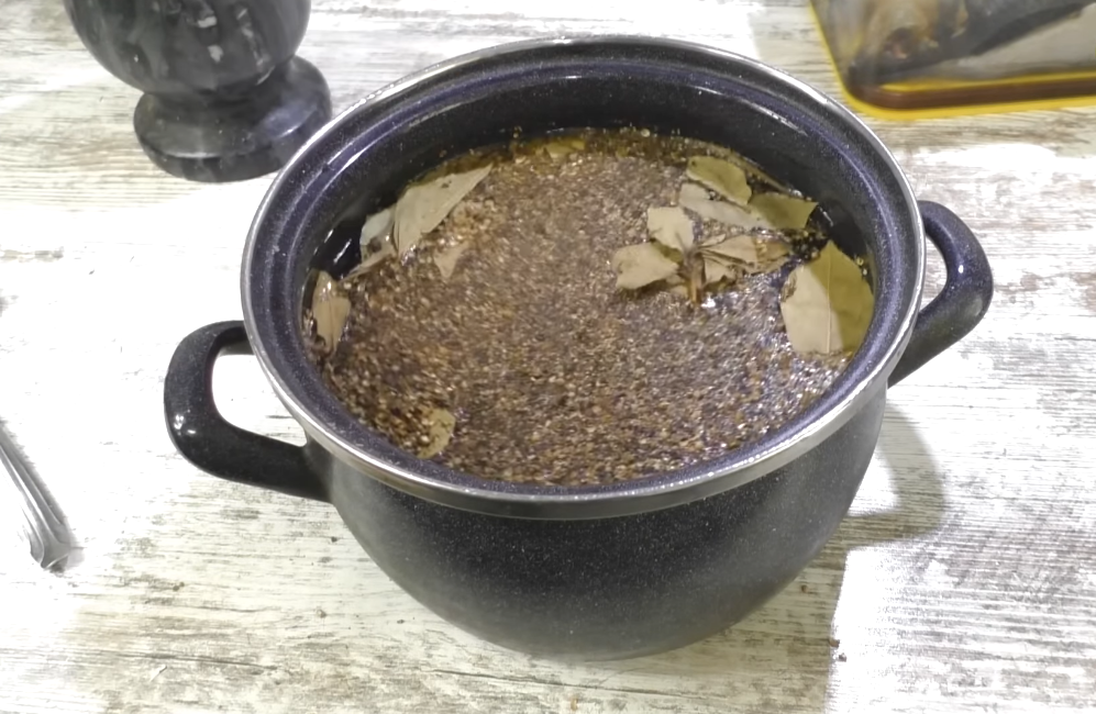 Всё, друзья, это база, дальше вы можете добавлять всё, что вам нравится, хотите, добавьте одну-две гвоздички, пряность селёдке тоже не помешает. Также следующим ингредиентом обязательным для засолки селёдки является лавровый лист, прямо жменьку, лавровым листом селёдку вы не испортите, без фанатизма, конечно, пять-шесть листов будет более чем достаточно.