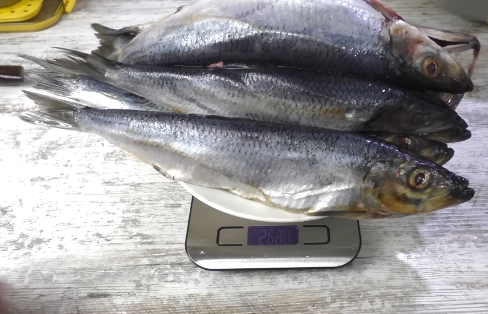 Итак, селёдку мы почистили удалили кишки жабры и помыли, теперь нам нужно узнать её вес, чтобы посолить правильно, чтобы у нас всегда был гарантировано стабильный результат, как вы знаете, стабильность — признак мастерства.