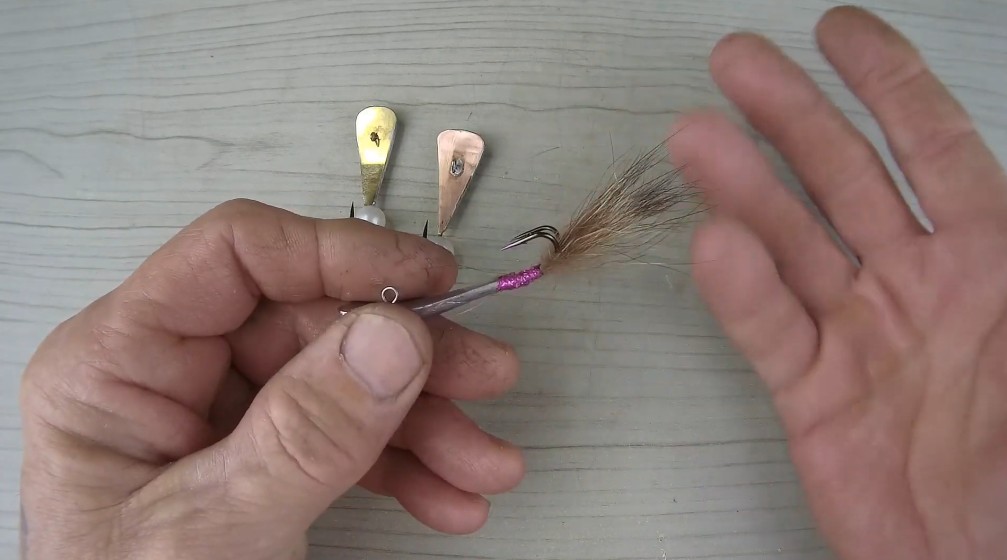 Если впаян двойной крючок, то делается стример, но это может быть всё что угодно, это может быть люрекс, шерстяные нитки или мех животного.