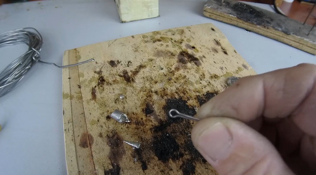 Припой я использую здесь ПОС-40, в качестве флюса — ортофосфорная кислота. И, припаяв крючок, наращиваю само тело мормышки.