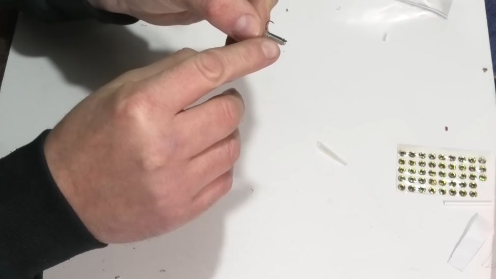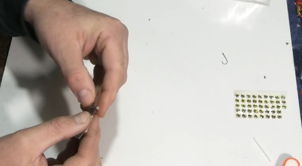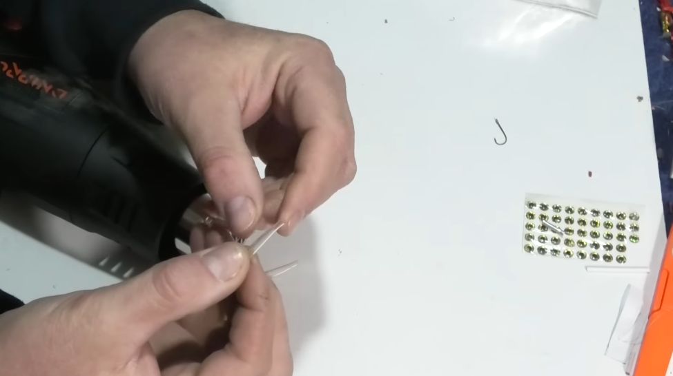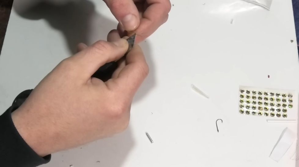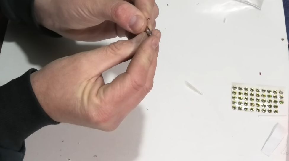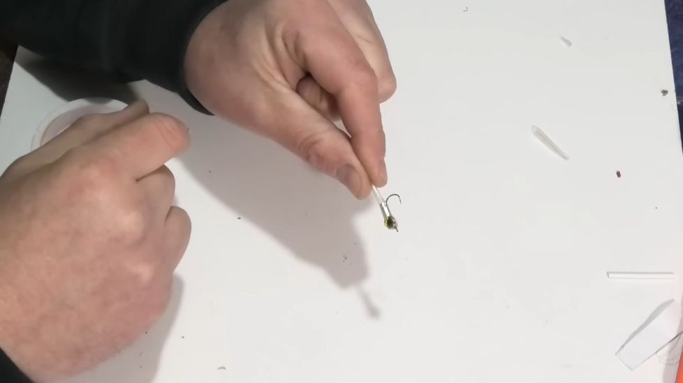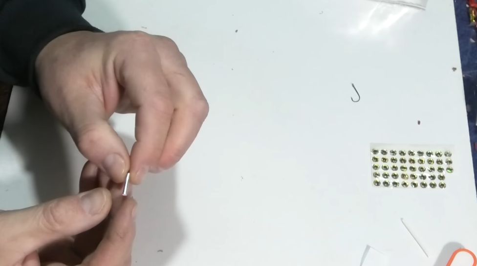 И у нас практически вот такой малёчек, пыздрик, как я его называю, на него очень хорошо ловится рыбка, и чтобы дополнительно больше привлекать рыбку, я клею еще глазки, можно, конечно, глазки не клеить, это уже дело лично каждого, но я хочу, чтобы было красиво, и мне было красиво, и рыбке было красиво.