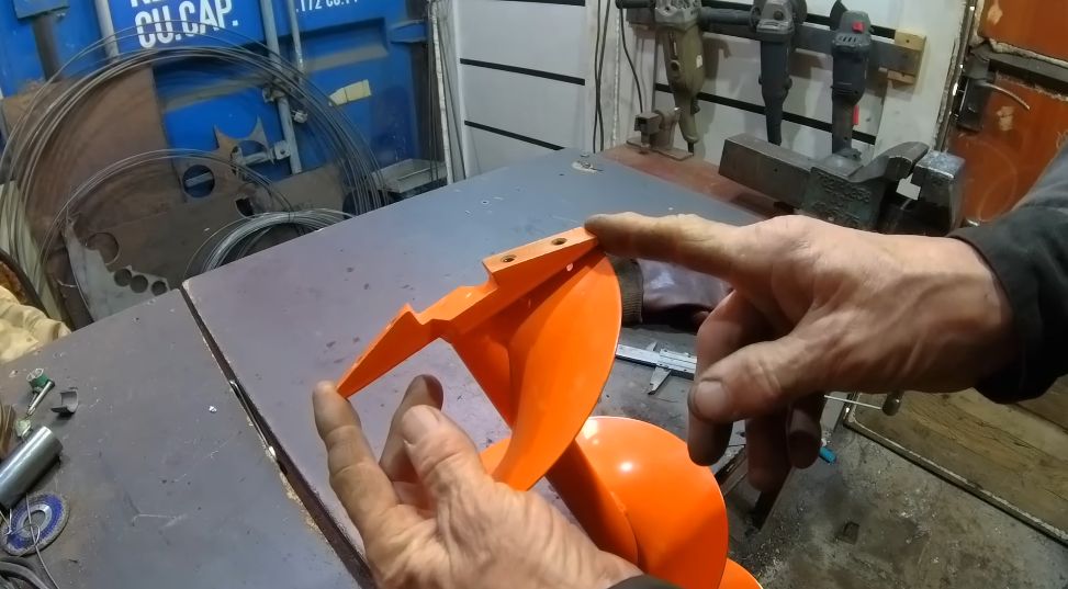 Это заводской размер, и из-за его пределы я не выхожу. Если с каждой стороны добавить хотя бы по 1,5 мм, то общий диаметр увеличится на 3 мм. При такой установке кольца шнек будет намного хуже. А на заводских шнеках стоит кольцо ещё большей толщины, где-то 3, где-то 5 мм, поэтому приваривать кольцо я буду не с торца, а под установочной площадкой так, чтобы заводской размер не изменился.