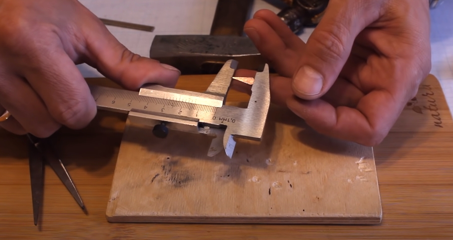 Вырезаем ножницами небольшую заготовочку, придаем ей форму равнобедренного треугольника. Срезаем уголочки и дорабатываем надфилем. Сглаживаем все острые углы, ну и так далее. И выпрямляем на наковаленке.