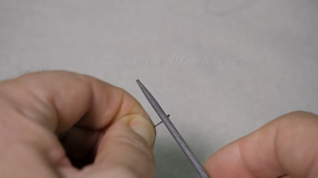 При помощи надфиля снимаем вместе пайки с каждого крючка защитный оксидный слой. В некоторых крючках этот оксидный слой можно удалять ортофосфорной кислотой, но в данных кислота нам не поможет.