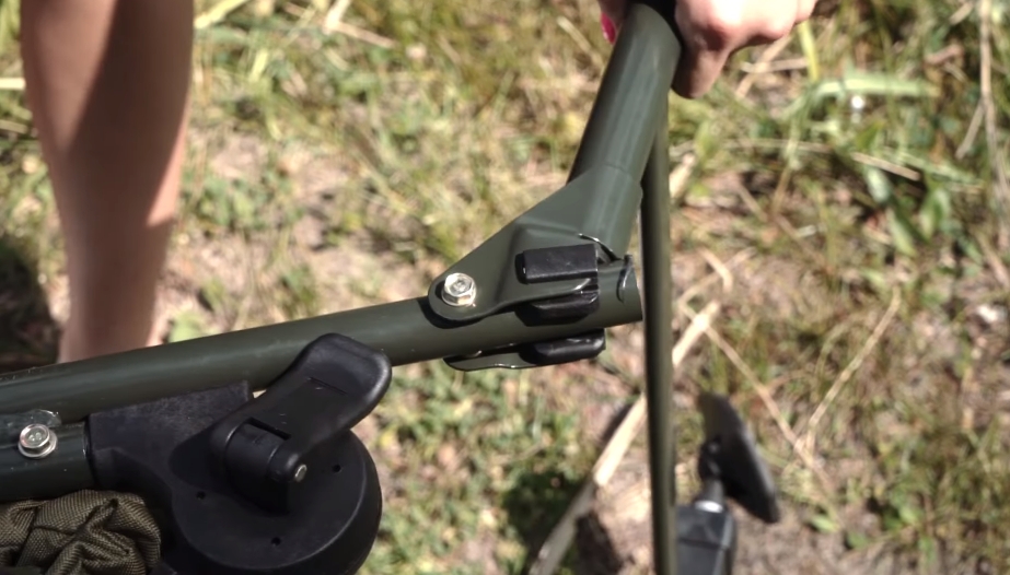 Ножки в разложенном состоянии должны закрепляться в специальный фиксатор, который предотвращает их само складывание. Если специализированных фиксаторов нет, то при неполной разборке кресло может складываться подвесом. рыболова. Тем самым он может травмировать себя или окружающих, а еще хуже - поломать снасти.