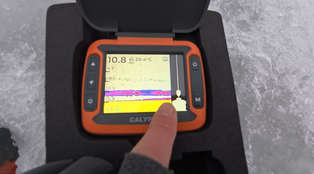Глубина 11 метров, решил здесь остановиться, и видно, что стоит ряба у самого дна, может быть и подлещик, не факт, что это судак.