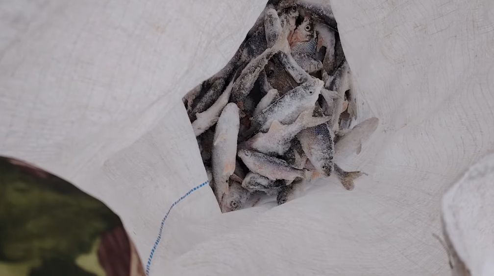 В общем, улов по кило 10 чебака, карася так и не дождались на Чане, делать нечего, поднялась лютая метель. Проводил эксперимент, пробовал ловить на резину и на живую насадку, на резину гораздо хуже ловится.