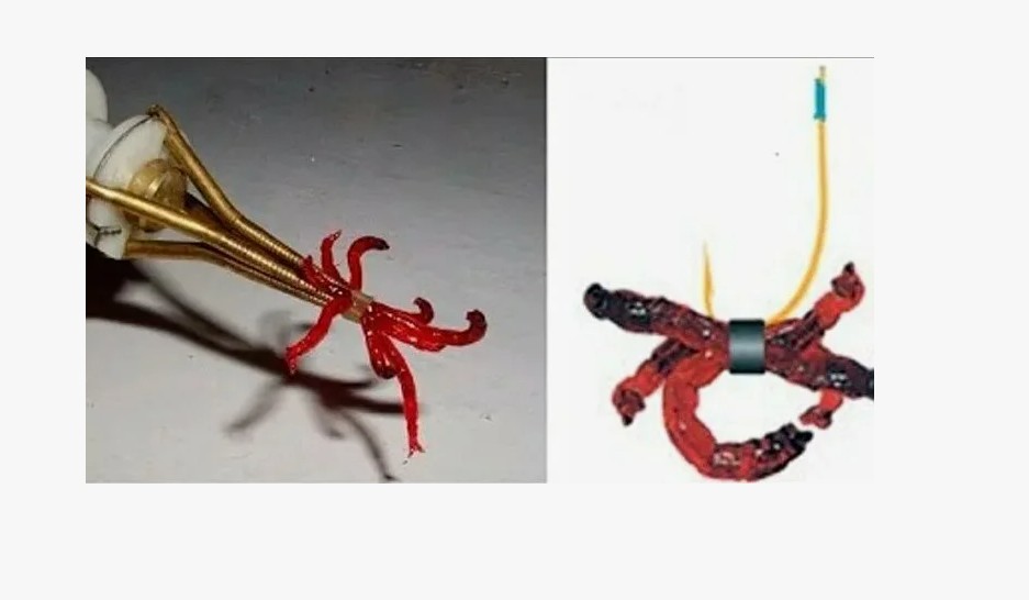 Как это работает? Вы берёте одну резиночку из тех, что идут в комплекте, насаживаете её на четыре латунных или бронзовых ножки. Ножки должны быть чуть-чуть расходящимися, чтобы резинка не соскакивала. Затем вы раскрываете «Петлевяз», запускаете в вашу мотыльницу, берете пучок мотыля и закрываете его.
