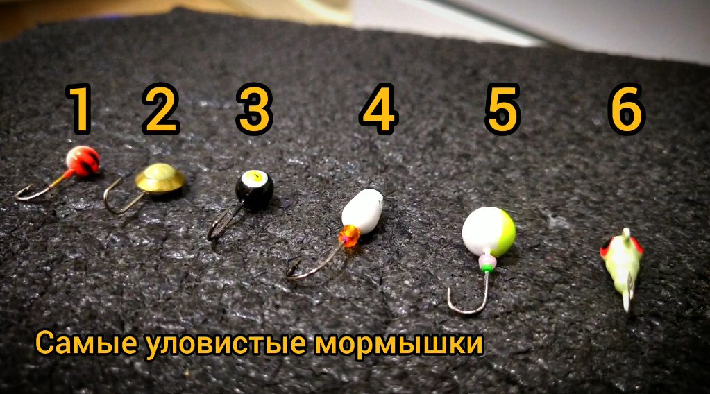Мы расставили мормышки по уловистости, с первого по пятое место.