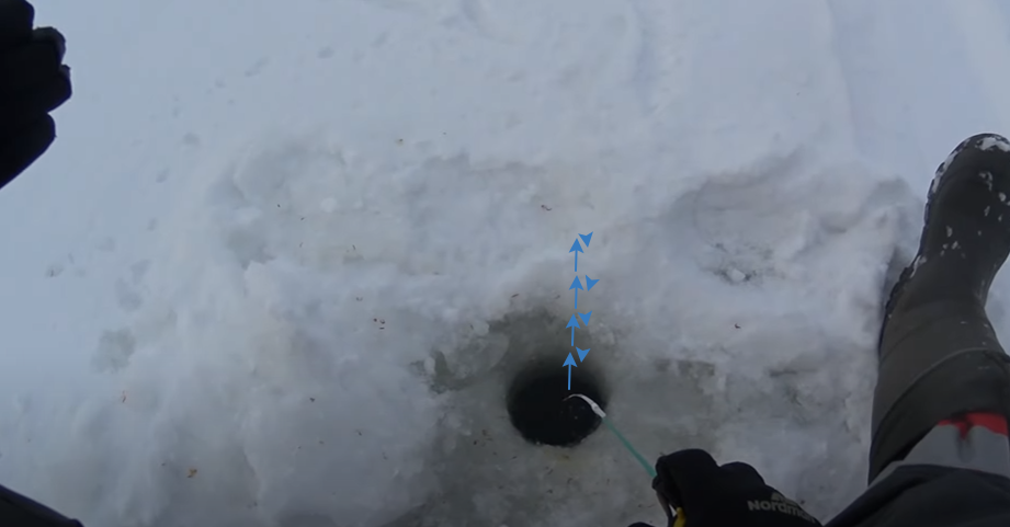 Выполняется она следующим образом: мормышка отрывается от дна, при этом кивок двигается от одного края лунки к другому, к строго противоположному, без остановок, резких ускорений, параллельно.