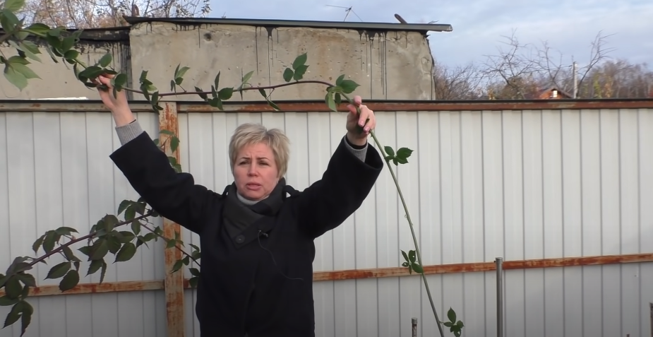Наступил момент укрытия, когда уже пришло время укрывать. Что мы делаем? Я настоятельно прошу: не кладите никогда все, что мы укрываем, на землю. Обязательно нужно убрать всю органику, которая есть под кустом, то есть весь лист, который упал и который вы рукой еще до рвете. Все соберите под кустом, не оставляйте ничего. Под эту часть, куда будет ложиться куст, на землю можно положить пенопласт, можно положить ящики. Самые главные, то, что я вам говорила, не кладите на голую землю.