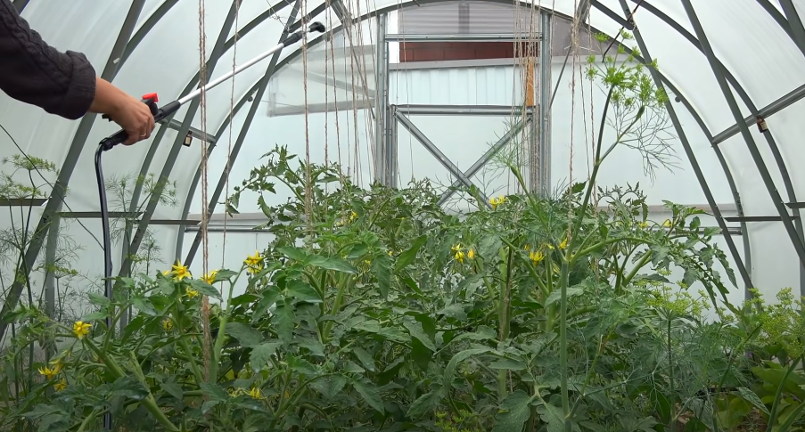 Также, конечно же, вы можете обрабатывать этим раствором томаты во грунте, и поверьте, это даст действительно очень хороший результат. Также хочу сказать, что при повторных обработках этим раствором вы можете не касаться нижних листьев. Обрабатывайте только верхнюю часть, там, где расположены цветочные кисти, цветы и завязи. Так как бор, он накапливается в растениях, то есть те листья, которые вы уже обработали предварительно, то есть они уже имеют содержание бора. Поэтому можно обрабатывать только верхнюю часть растения. И это не будет ошибкой.