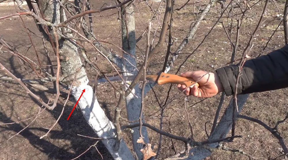 Мы сейчас спилим эту верхушку и будем делать саму операцию. Берем садовую пилу и отпиливаем ненужную часть дерева. В конце, когда допиливаете, придерживайте, чтобы не сорвать кору. Если вдруг сорвали кору, то чуть ниже отпилите.