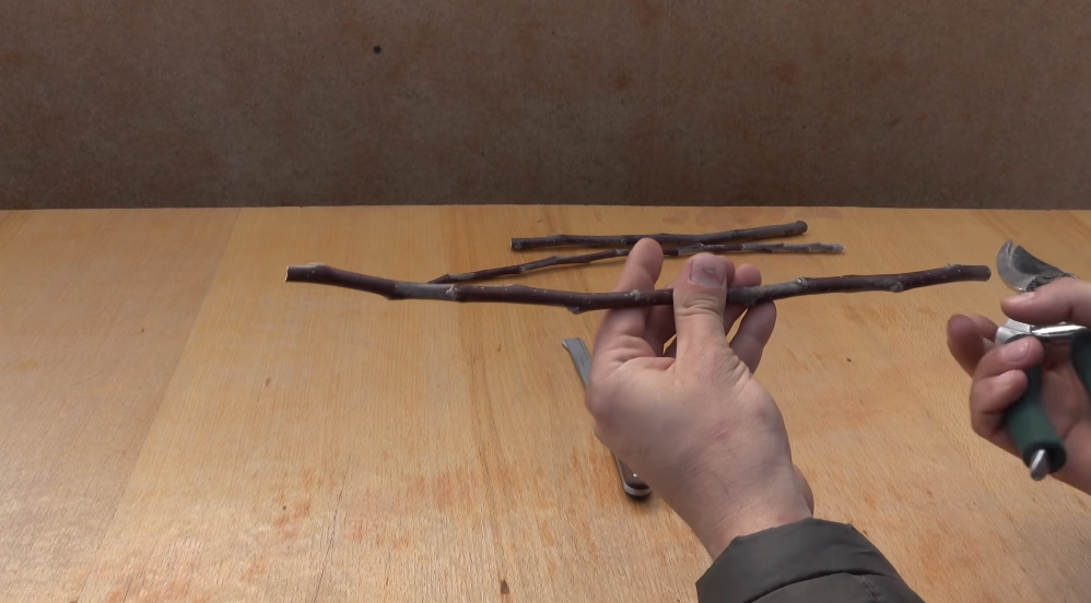 Сегодня покажу, как сделать прививку под кору, как правильно подготовить черенок, черенки обязательно срезаем в середине марта, пока почка не лопнула, нам нужны черенки первого года прироста, то есть это такие длинные сверчки.